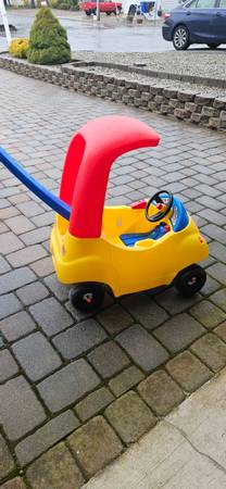 FOR SALE WILL BE A LITTE KIKES PUSH RACE CAR = NICE CONDITION = THIS item that has been used previously. The item may have some signs of cosmetic wear and imperfections., but is fully operational and functions as intended needs item = LOOK AT THE PICTURES POSTED PART OF THIS AUCTION AND CONDITION =ASK QUESTIONS BEFORE BIDDING = show contact info