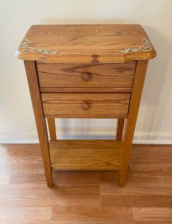 For sale is the above pictured 2 Drawer Solid Oak Mission/Shaker Style Console/Hallway/Entrance Way Table. Hand painted floral detail signed on top by the artist. Very well made, heavy solid oak, dovetail drawer joints, glued and screwed. 30” H X 18” W x 11” D. (See pics). Pictures are of the actual item. Item is located in Toms River NJ. Cash and carry. Any questions call, email, text or CL chat. Thank you.