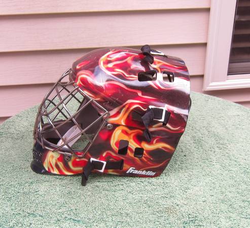 Up for sale is a pre-owned Franklin NHL Hockey Youth goalie mask/helmet.